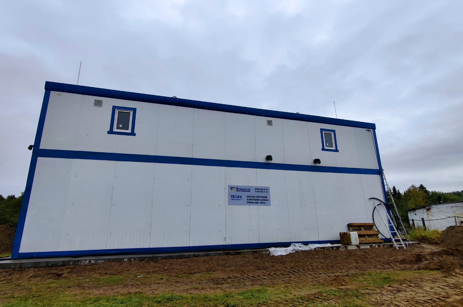 Станция очистки бытовых сточных вод "ТВЕРЬ-1,5С" представляет из себя утепленное здание из блок-модулей, установленных на фундаменте, со всем технологическим оборудованием внутри.